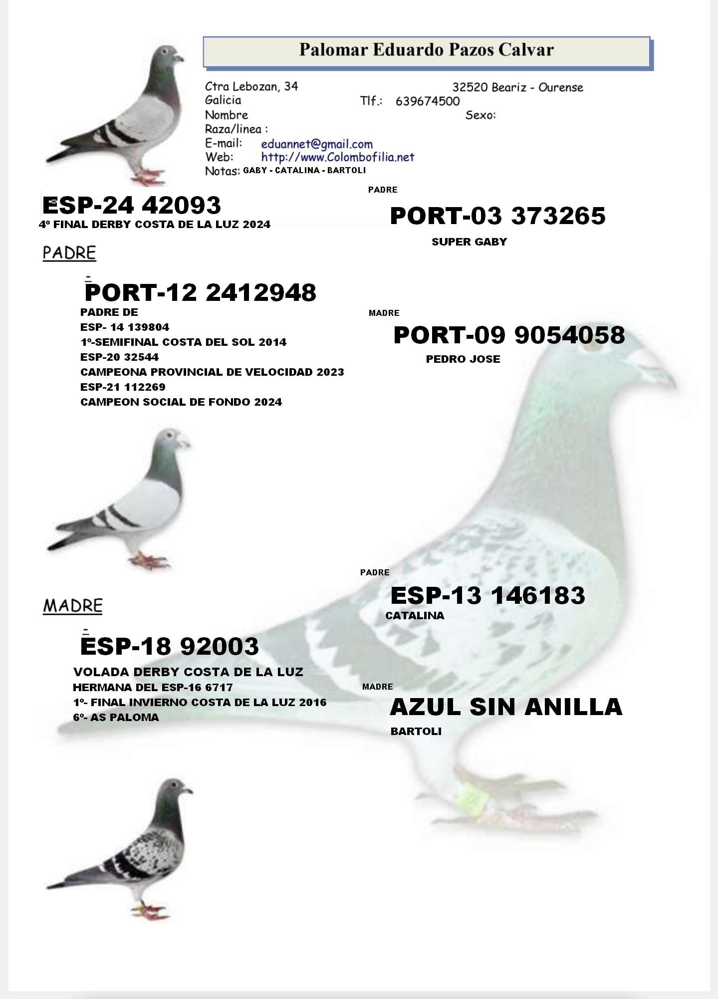NO SE GARANTIZA EL SEXO DE LAS PALOMAS