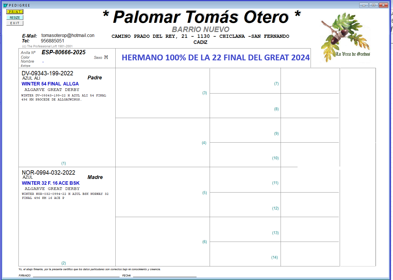 LA ORGANIZACION SE PONDRA EN CONTACTO CON EL GANADOR DE LA SUBASTA PARA ENTREGARLE LA PALOMA UNA VEZ SE EFECTUE LA TRANSFERENCIA BANCARIA.