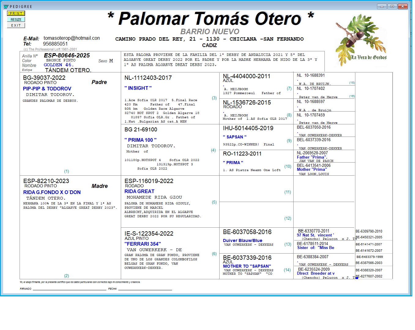 GRAN PALOMA RECOMPRADA POR SUS GRANDES RESULTADOS EN DERBYS Y EN NUESTRO PALOMAR.