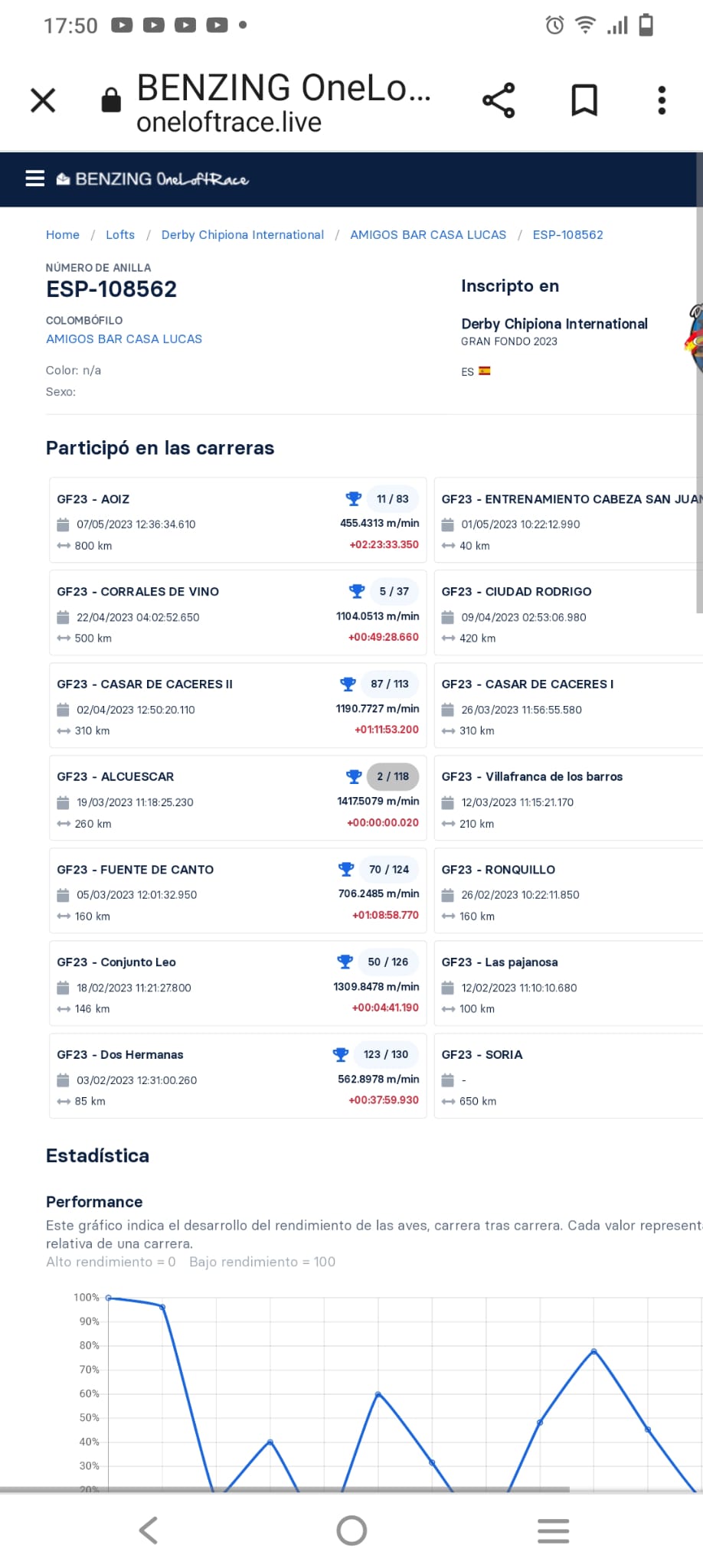 PALOMA DE GRAN FONDO COMPRADA POR SUS RESULTADOS DESDE 800 KM FAMILIA DE LOS PAJAROS DE FRANCIA 1000KM
