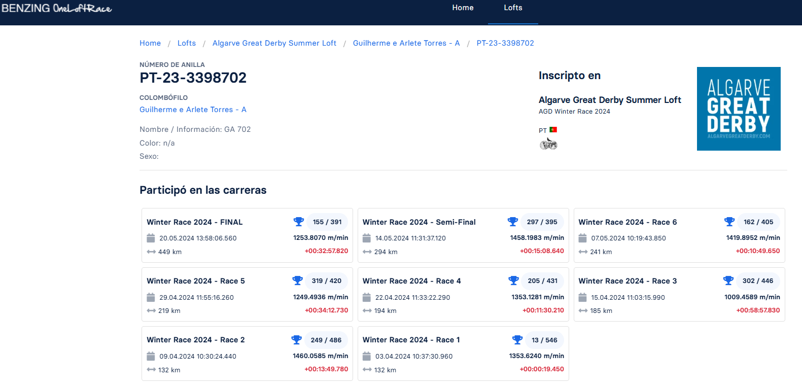 GRAN PALOMA GABY, MACHO PEQUEÑO SUPER FUERTE, NO FALLO NI UN VUELO EN EL DERBY,SIEMPRE VOLANDO EN CABEZA Y GRANDES RESULTADOS EN EL PALOMAR.