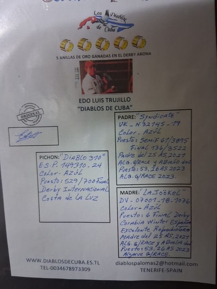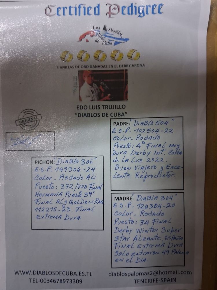 GRAN PALOMA PEQUEÑA MUY FUERTE DE PROCEDENCIA DIABLOS DE CUBA. NO SE HA PROBADO RECIEN COMPRADA.