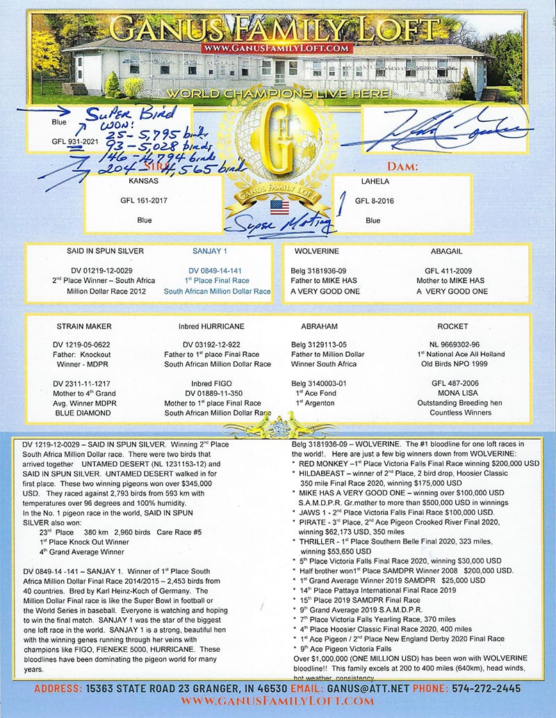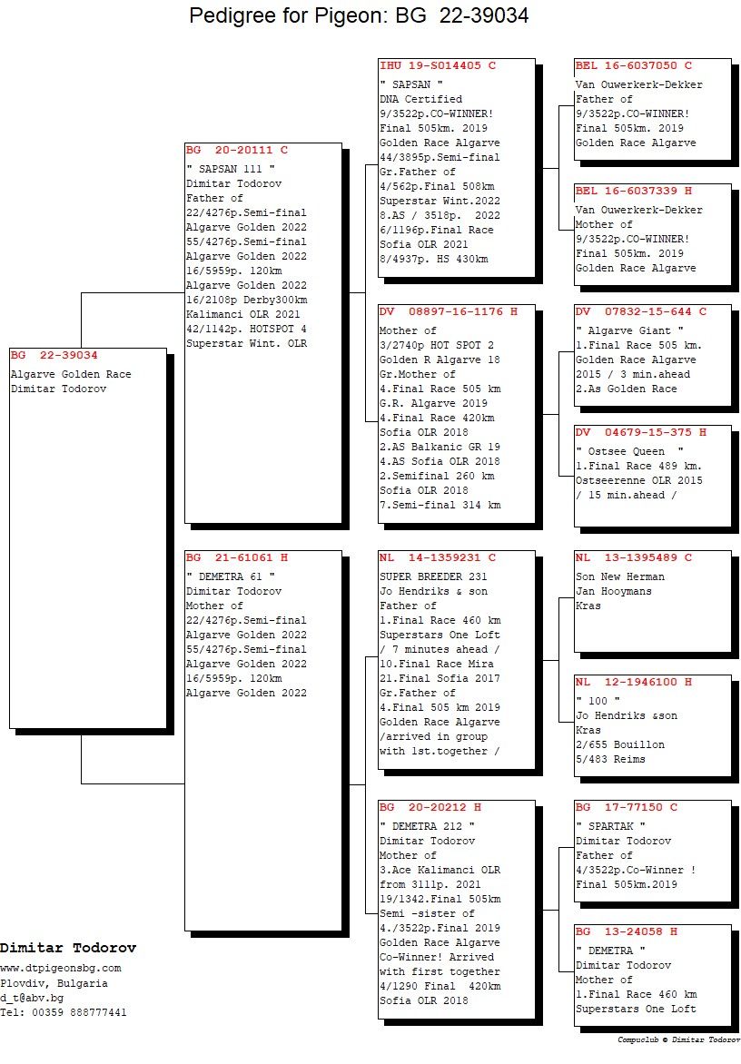GRAN PALOMA COMPRADA POR UNA ELEVADA CUANTIA SU MADRE FUE COMPRADA EN EL GOLDEN POR 3600 EUROS DE GANUS SU MEJOR VOLADORA DE DICHO AÑO Y EL PADRE DEL GRAN DIMITAR TODOROV. GRANDES RESULTADOS EN CASA.
